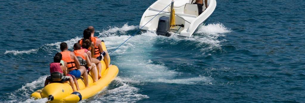 Another activity that this company offers is banana boating. Banana Boating is “a long, narrow, inflatable recreational boat that riders sit astride while being towed by a powerboat.” Through the island’s company, there can be up to 6 passengers at once which makes a great family activity.