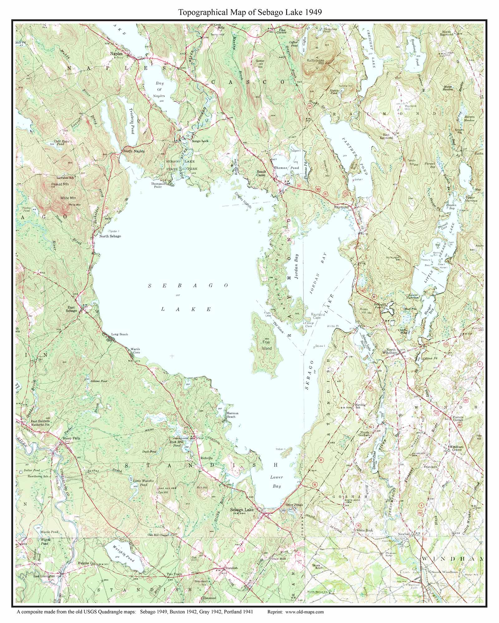 “Sebago Lake is the deepest and second-largest lake in the U.S. state of Maine. It is in Cumberland County, and bordered by the towns of Casco, Naples, Raymond, Sebago, Standish and Windham. The seasonally occupied town of Frye Island is on an island in the lake. Sebago Lake is known for its erratic and sudden changes in weather, likely due to its proximity to the Atlantic Ocean and to Mt. Washington, a very notorious extreme weather hotspot.” –Source