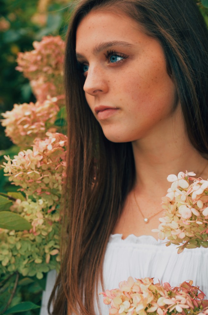 Finding a bush full of color or a tree branch with blossomed flowers is one of my favorite things. Placing the subject within a colorful atmosphere has a profound effect on the artsiness of an image. I often ask my clients to crouch within a bush or stand between tree branches to play with the depth of an image and truly have the subject immersed in the colorful blossoms.